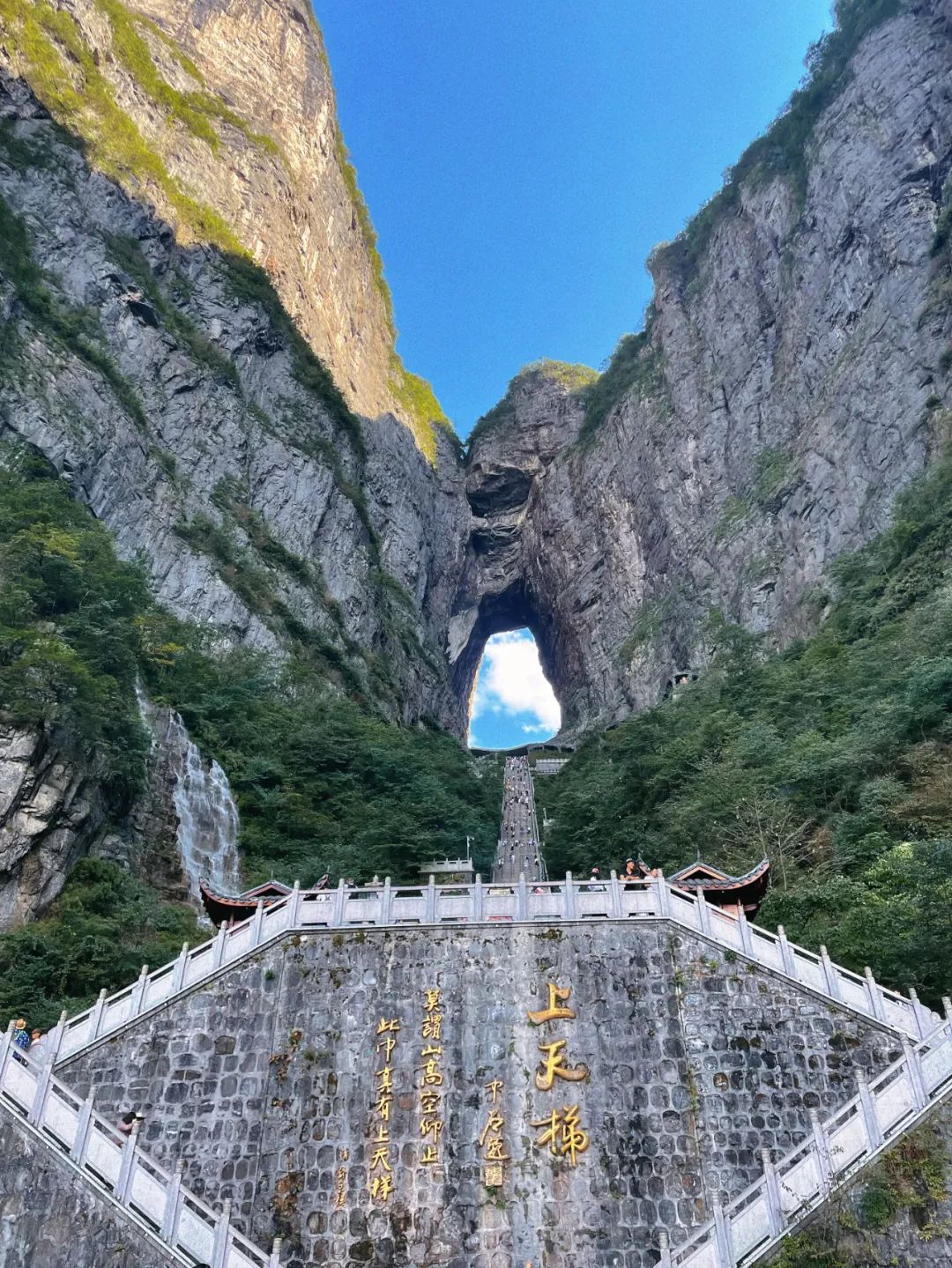 A線索道上山,天門(mén)山是張家界地區(qū)海拔最高的山,也是湘西地區(qū)土家族的圣山,因自然奇觀天門(mén)洞而得名。