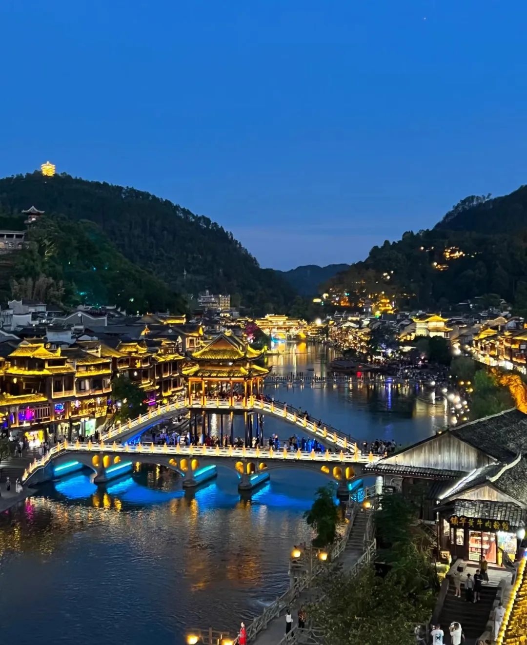 夜色中的鳳凰古城霓虹璀璨、美輪美奐、令人陶醉,晚間自由徜徉在夜色如織的鳳凰沱江河畔,聽(tīng)著清吧歌手婉轉(zhuǎn)動(dòng)聽(tīng)的彈唱,此時(shí)此刻坐著發(fā)呆也是一種幸福。